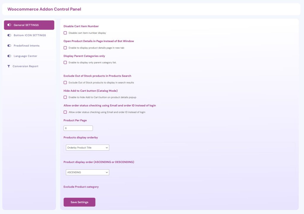 General Settings 1 minuteread Home / Knowledgebase / Woocommerce Modules / General Settings Here under dashboard Bot – Woo Settings -> GENERAL SETTINGS, you can control settings. 00329 FacebookTwitterLinkedin1 minuteread